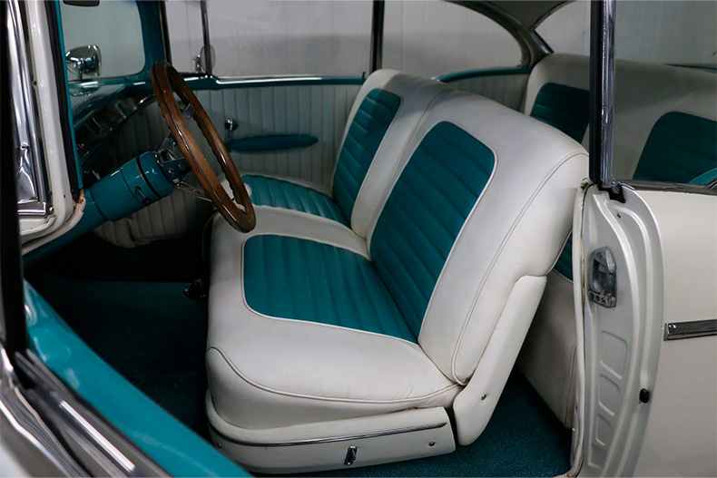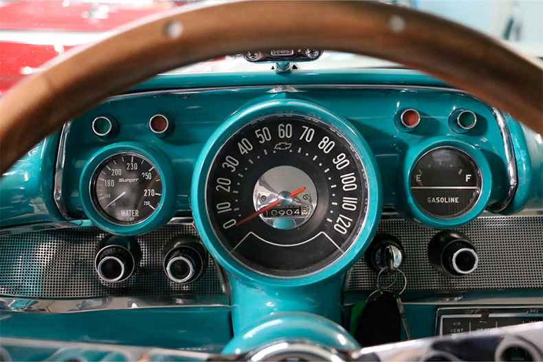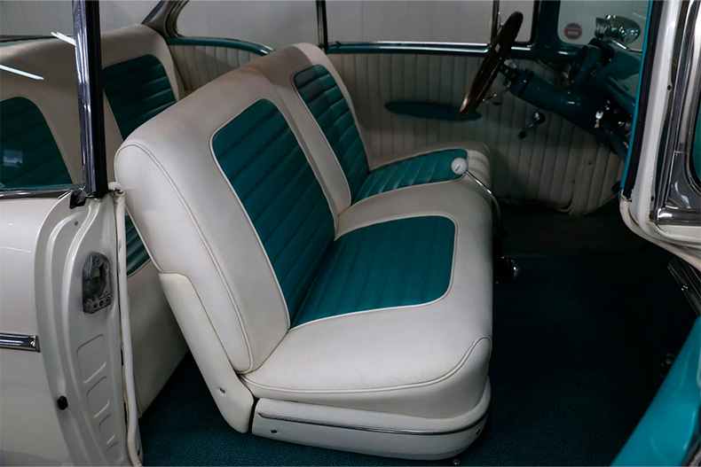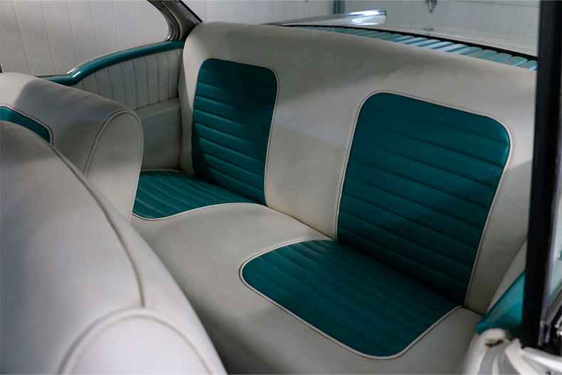 The odometer reflects a mere 10,904 miles, a testament to the car's meticulous care and limited use. Every detail, from the chrome accents to the pristine white interior, showcases a dedication to preserving the Bel Air's legacy while introducing modern touches for comfort and functionality. The spacious interior, clad in pristine white upholstery, evokes a sense of classic American luxury.