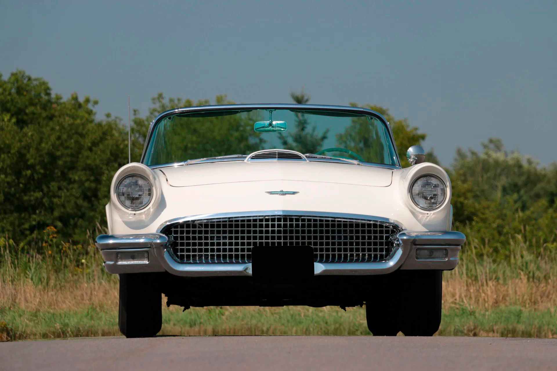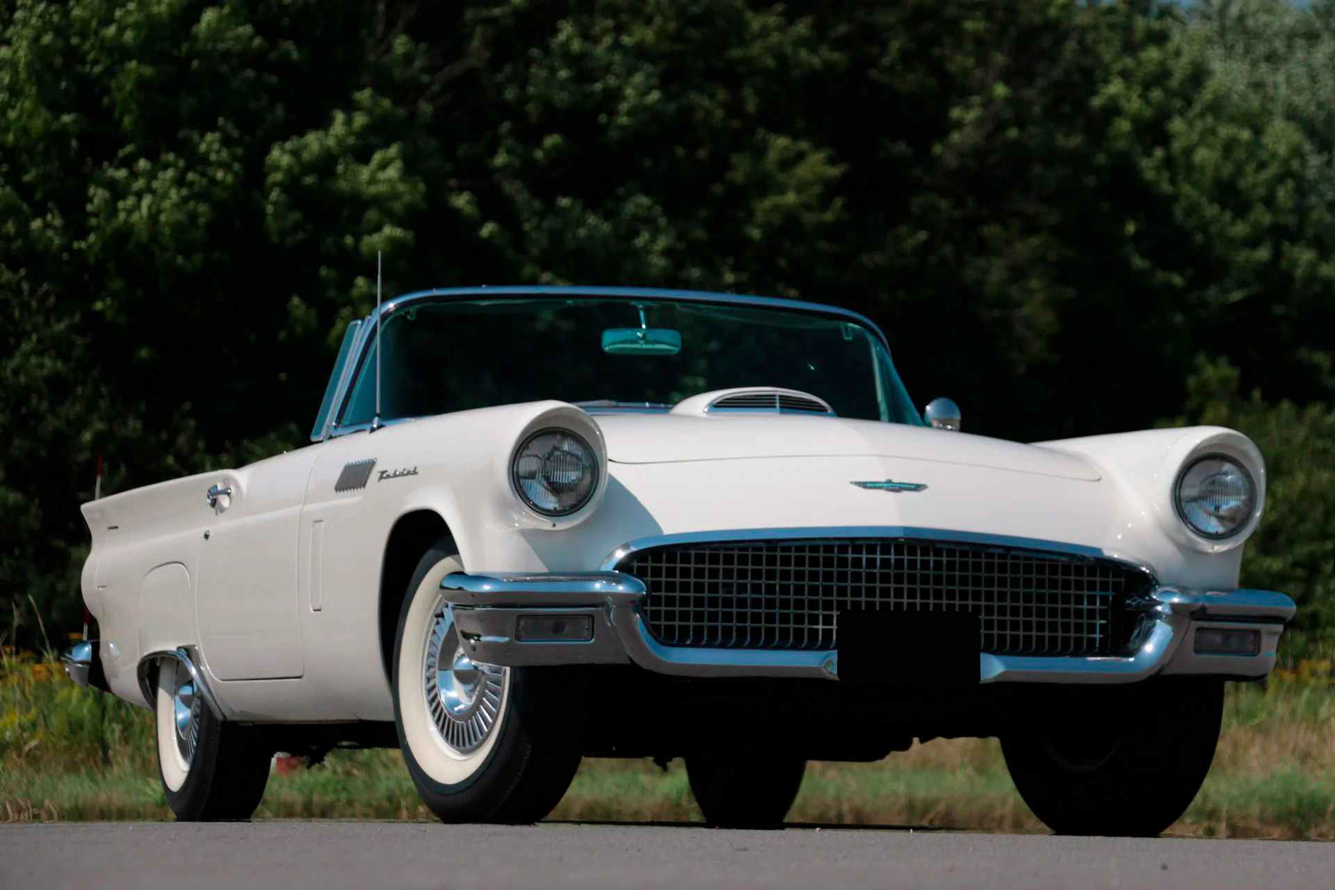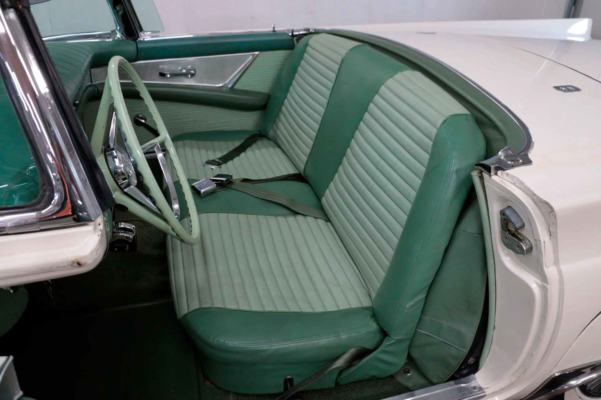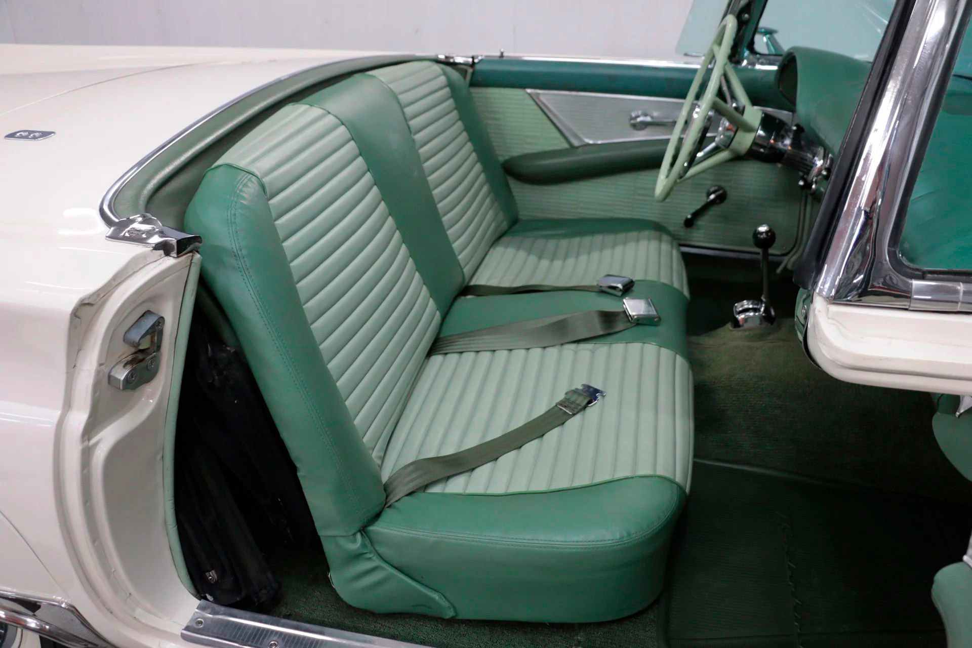 Step back in time with this stunning 1957 Ford Thunderbird, a true icon of American automotive history. This classic beauty boasts a captivating Wimbledon White exterior that shimmers under the sun, a testament to its impeccable care and preservation. Inside, the lush Green interior provides a luxurious haven, inviting you to slip behind the wheel and embark on a journey through the golden age of automobiles.