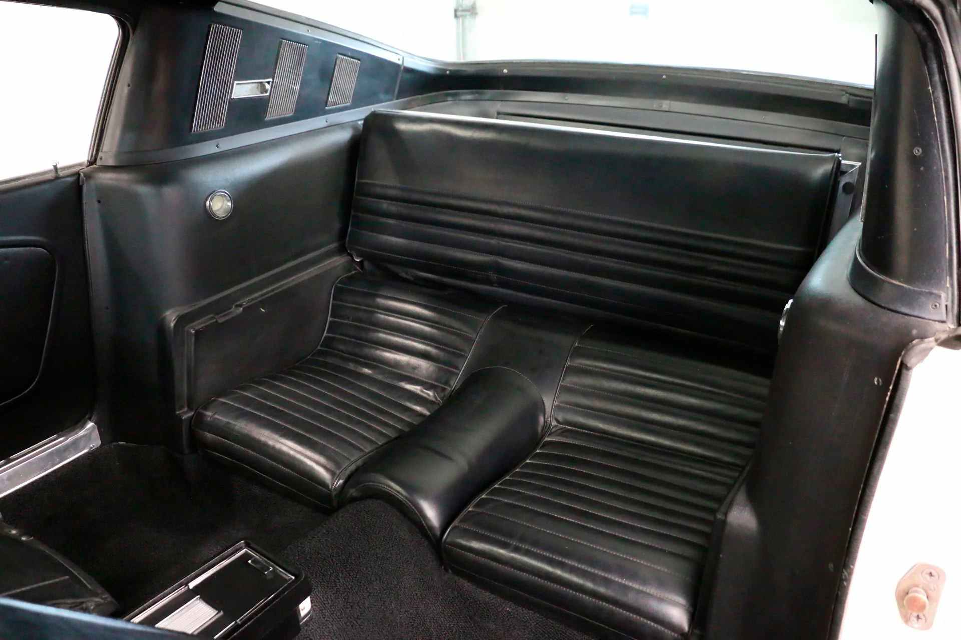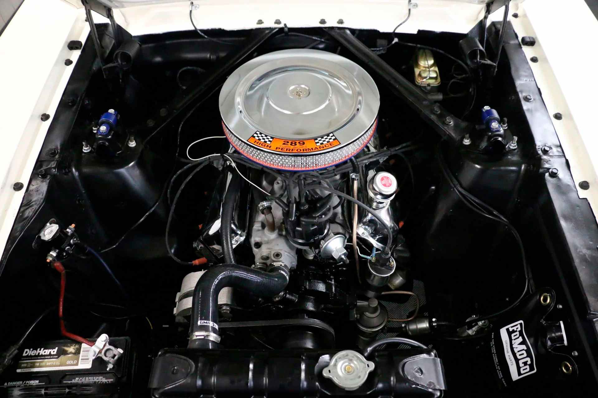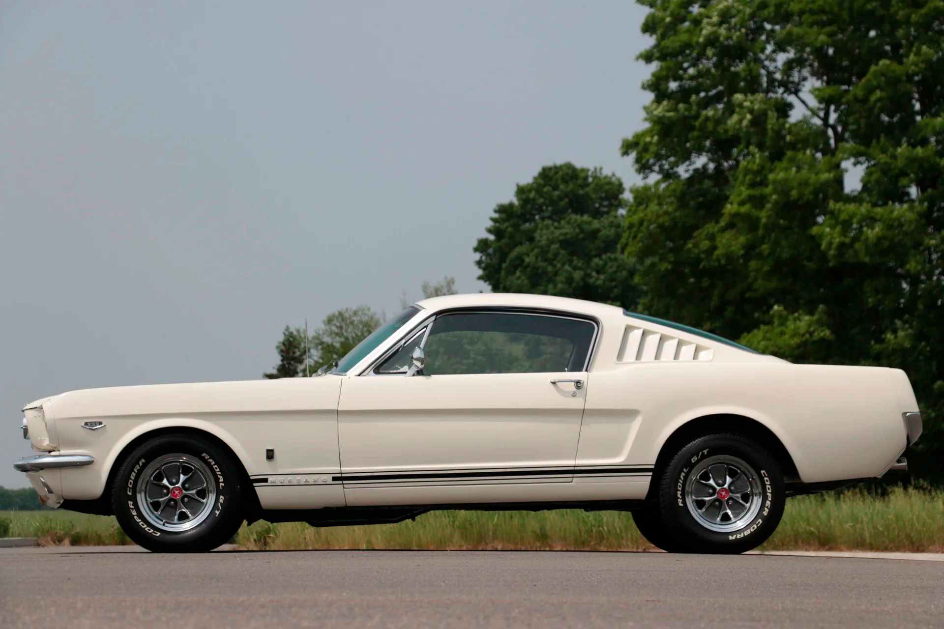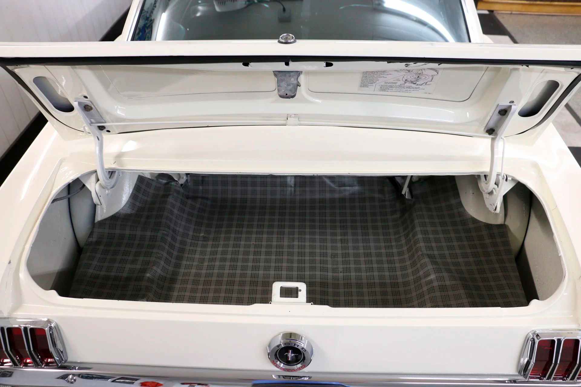 The pristine Wimbledon White exterior, punctuated by the iconic Mustang styling, gleams under the sun, showcasing the timeless elegance of this iconic design. From the graceful lines of the fastback to the distinctive grille and the iconic Mustang emblem, every detail speaks to a period of American automotive design that remains unmatched in its influence. Inside, the black vinyl interior exudes classic sophistication. The bucket seats, sporting a timeless design, offer a comfortable and sporty feel, inviting you to embark on journeys filled with nostalgia and excitement.